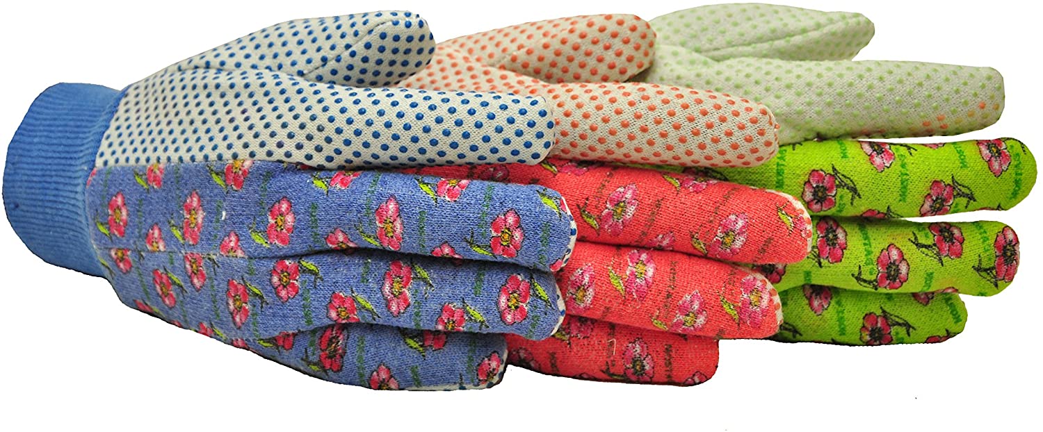G & F 1852-3 Women Soft Jersey Garden Gloves, Women Work Gloves, 3-Pairs Green/Pink/Blue per Pack
